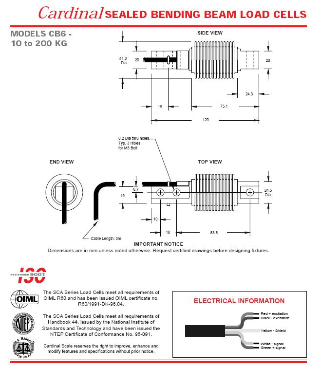 | 產(chǎn)品名稱:Csrdinal CB6 波紋管稱重傳感器(load cells) |