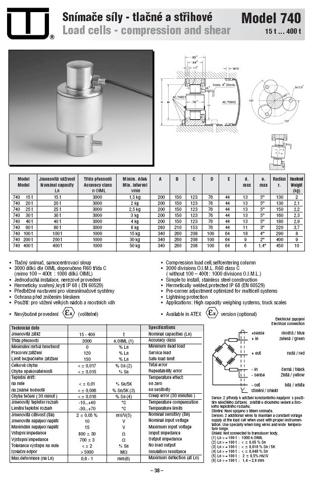 詳細(xì)特征: 標(biāo)準(zhǔn)量程:100-200-400t 精度等級(jí):1000n. OIML 最小靜載:0% Ln 負(fù)載:120% Ln 安裝負(fù)載限制:150% Ln 總誤差<±0.05%Sn 重復(fù)性誤差 <±0.015%Sn 溫度零度漂移 <±0.01%Sn/5K 靈敏度溫差影響 < <±0.018%Sn/5K 蠕變誤差(30分鐘)<±0.048%Sn/5K 溫度補(bǔ)償: -10 to +40 °C 溫度范圍: -20 to +70 °C 標(biāo)稱(chēng)靈敏度(Sn): 2± 0.5% mV/V 額定輸入電壓: 10 V 最大輸入電壓: 15 V 輸入阻抗: 800 ± 300 Ohm 輸出阻抗: 700 ± 30 Ohm 空載輸出<±2%Sn 絕緣電阻 > 5000 MOhm 最大偏差(at Ln):1.4-2.6mm
