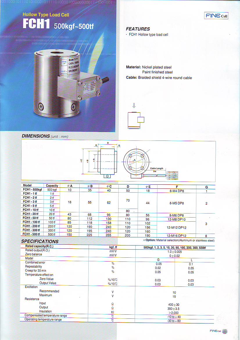 Fine FCH1 柱式稱(chēng)重傳感器(load cells)