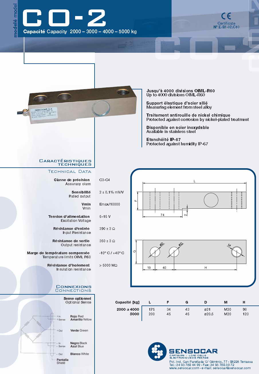 | 產品名稱:Sensocar CO-2 懸臂梁式稱重傳感器(load cells) |