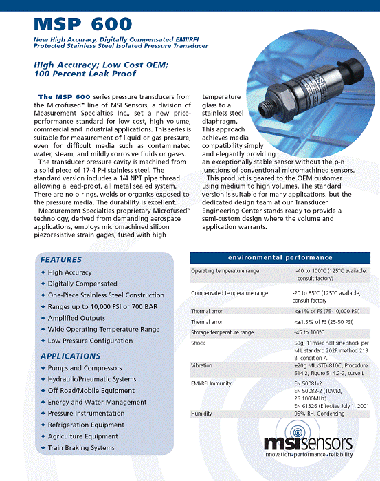 | 產(chǎn)品名稱:MSP-600 壓力傳感器(pressure sensor) |