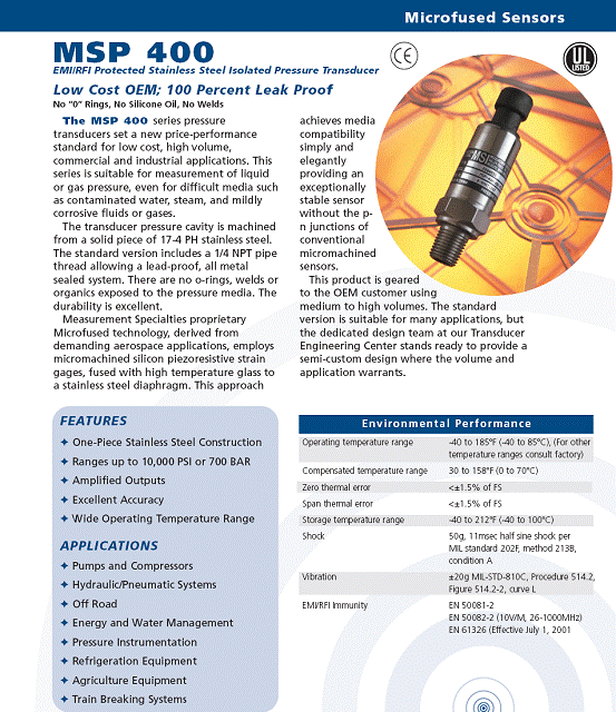 MSI MSP-400 壓力傳感器 (pressure transducer)