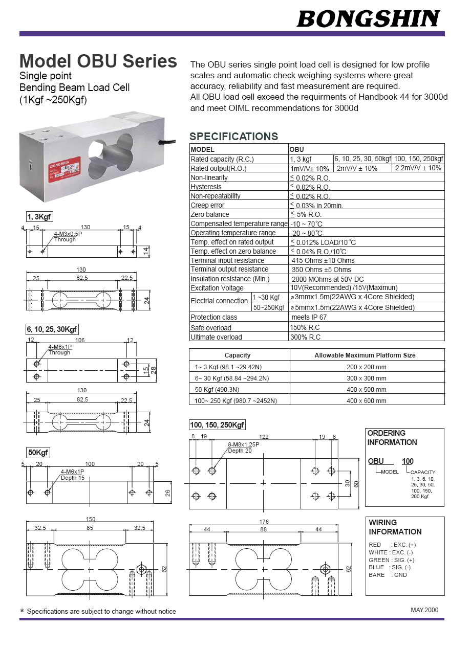 | 產品名稱:OBU 單點式稱重傳感器(load cell) |