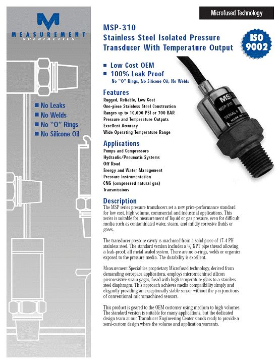 MSP-310 壓力傳感器(pressure transducer)