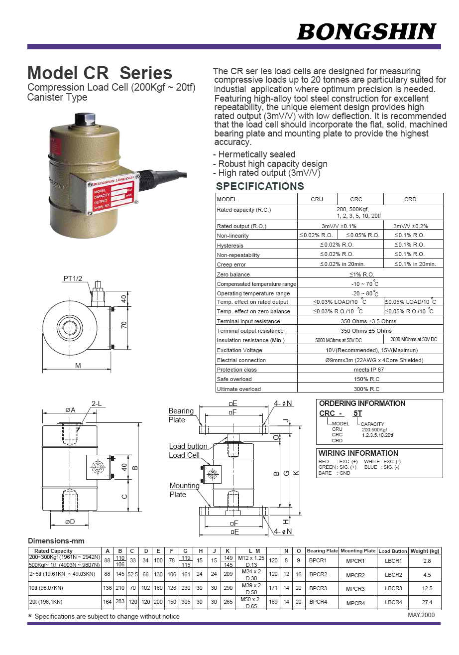 CR 壓式稱重傳感器(load cell)