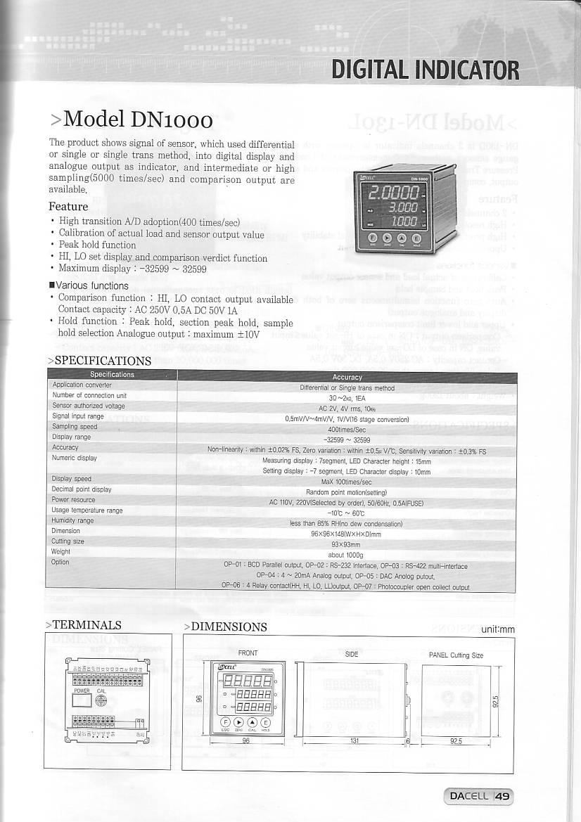 | 產(chǎn)品名稱:DN-1000 顯示儀表(Digital Indicator) |