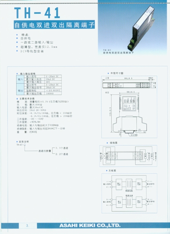TH-41 自供電雙進(jìn)雙出隔離端子(transmitter)