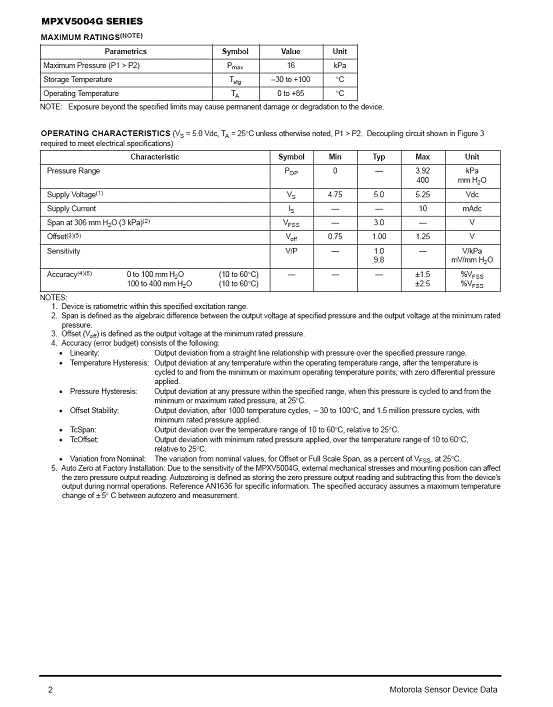 MPXV5004G 氣壓傳感器(sensor)