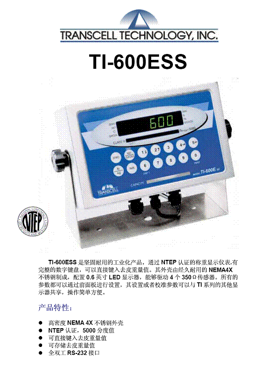 Transcell T1-600ESS 化工稱重顯示儀表(Indicator)