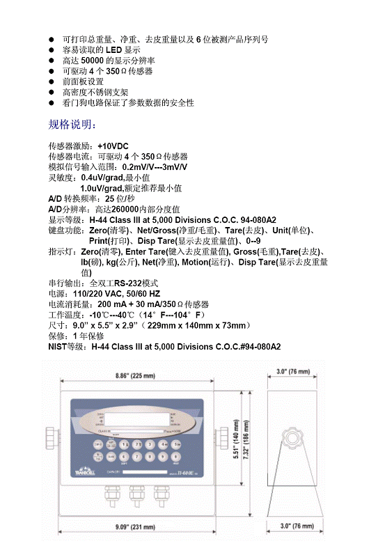 美國 transcell 稱重傳感器及儀表