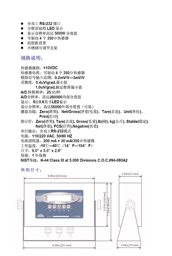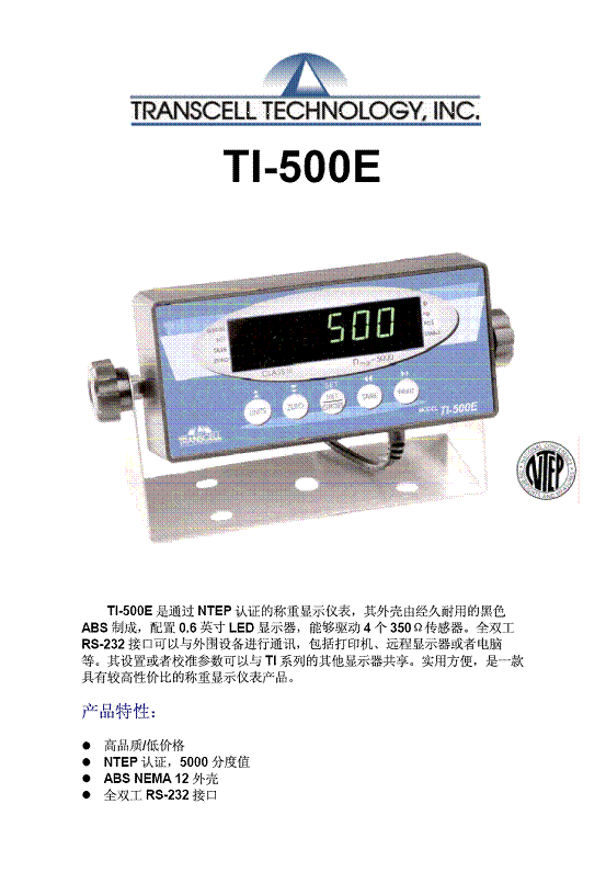 Transcell T1-500E-SS 耐用稱重顯示儀表(Indicator)