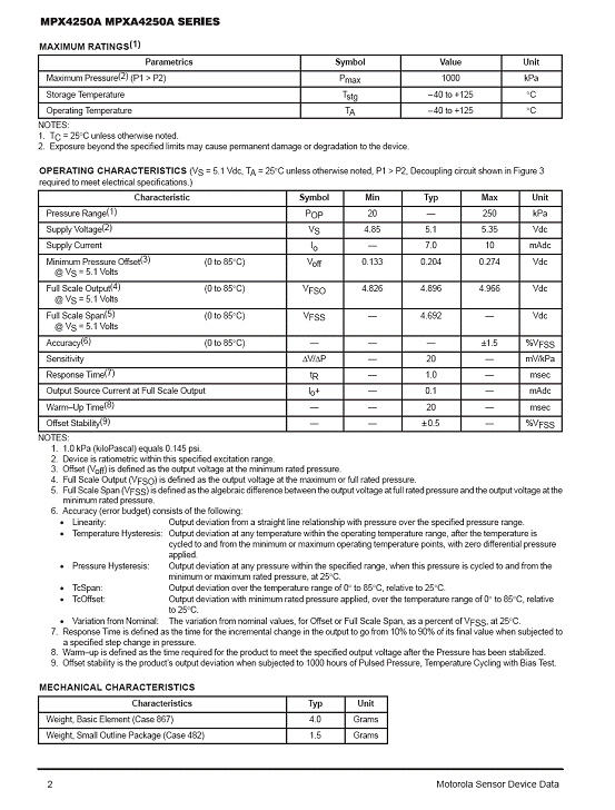 MPX4250A 氣壓傳感器(sensor)