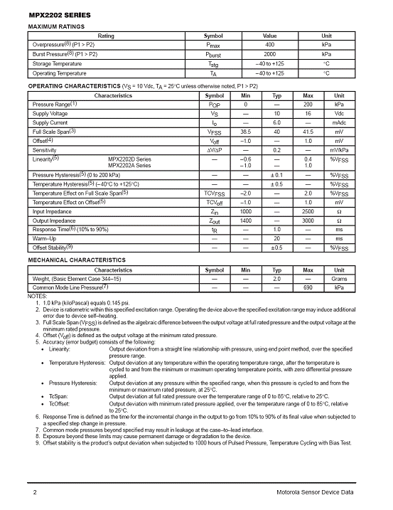 MPX2202 氣壓傳感器(sensor)