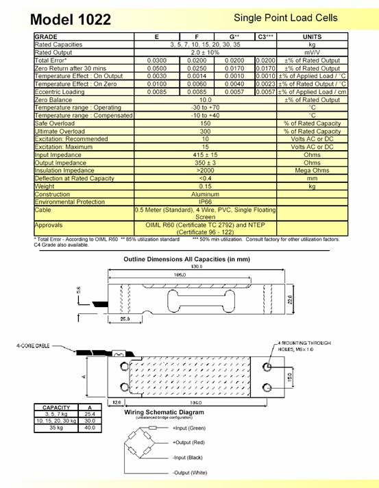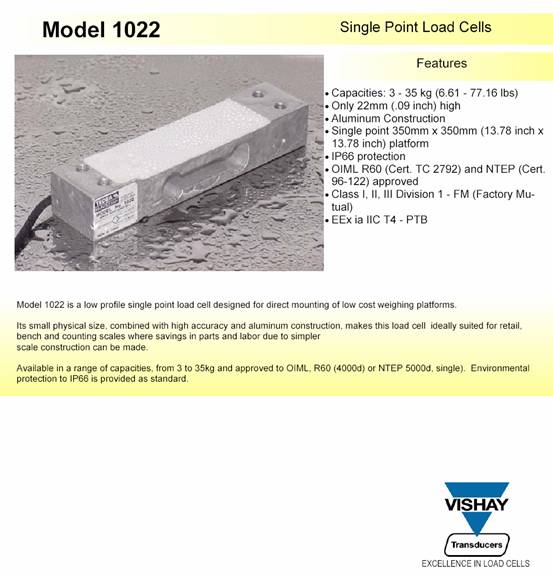 描述:1022是為低成本稱重秤設(shè)計的單點式傳感器。其緊湊的外形尺寸以及較低的成本適用于零售秤、計價秤和計數(shù)秤。