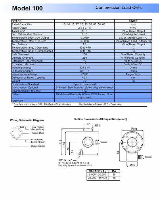 | 產(chǎn)品名稱:Tedea 100 稱重傳感器(load cells) |