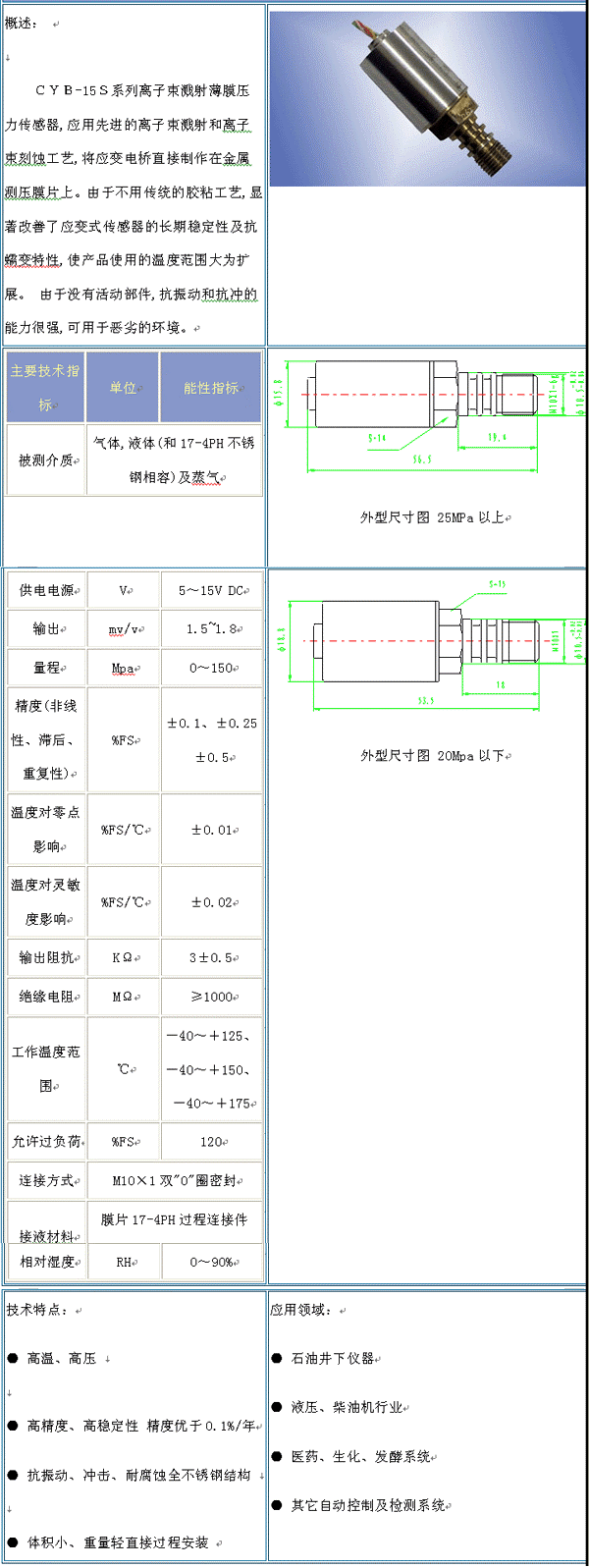 | 產(chǎn)品名稱(chēng):CYB-15S 濺射薄膜壓力傳感器(pressure sensor) |