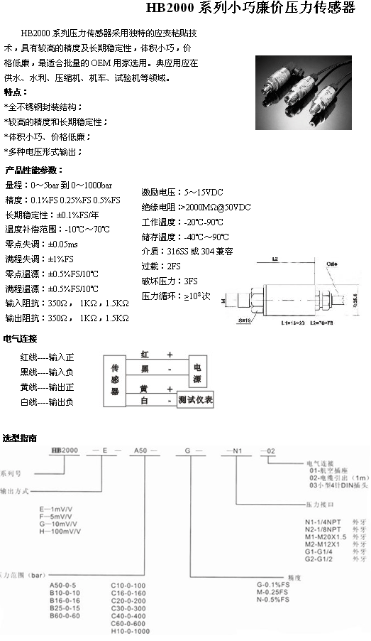 | 產(chǎn)品名稱:HB2000系列 小巧廉價(jià)壓力傳感器(pressure sensor) |