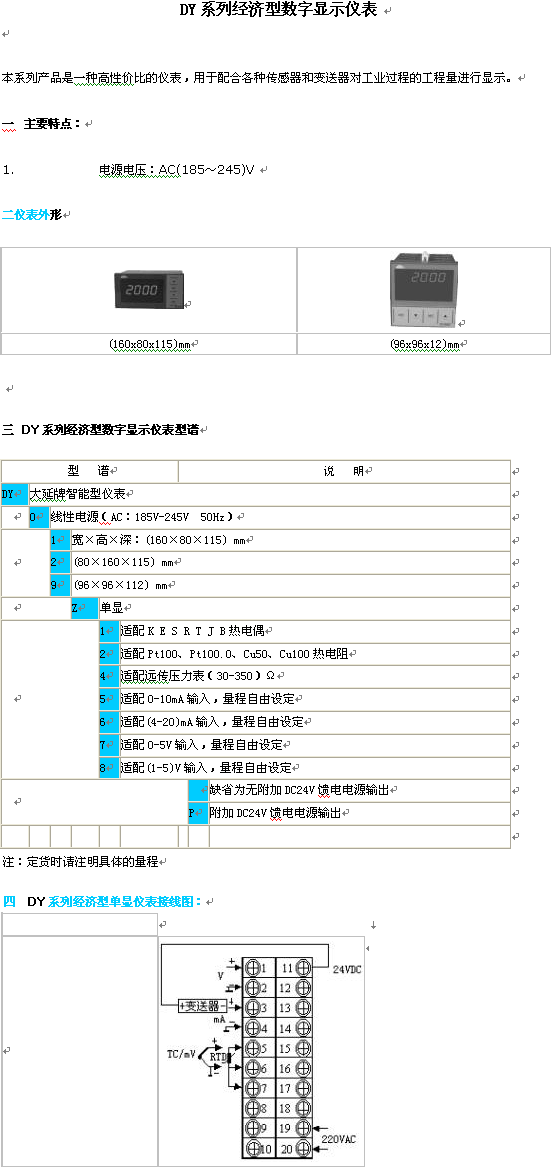DY系列 經濟型數字顯示儀表(Indicator):