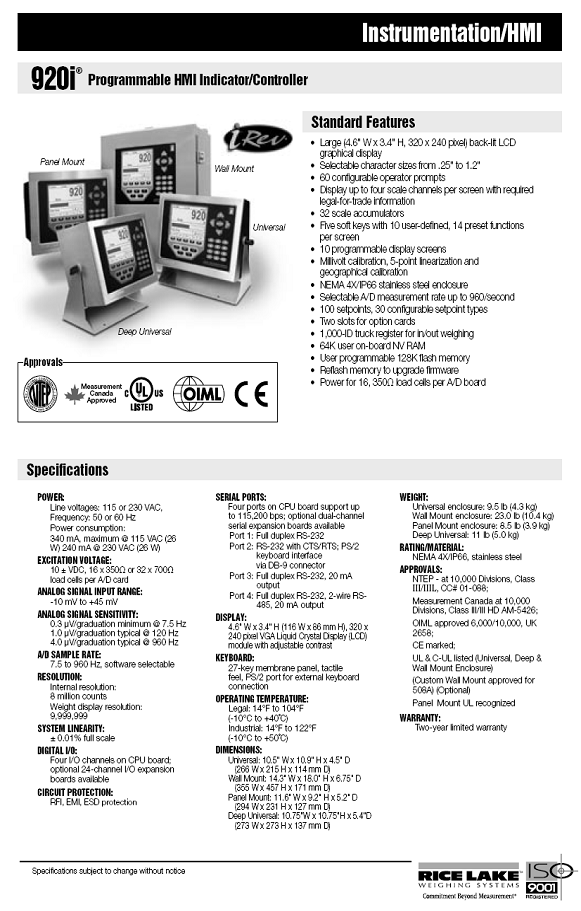 | 產(chǎn)品名稱:920i 稱重顯示儀表(Indicator) |