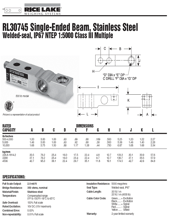 | 產(chǎn)品名稱:RL30745 懸梁壁稱重傳感器(load cells) |
